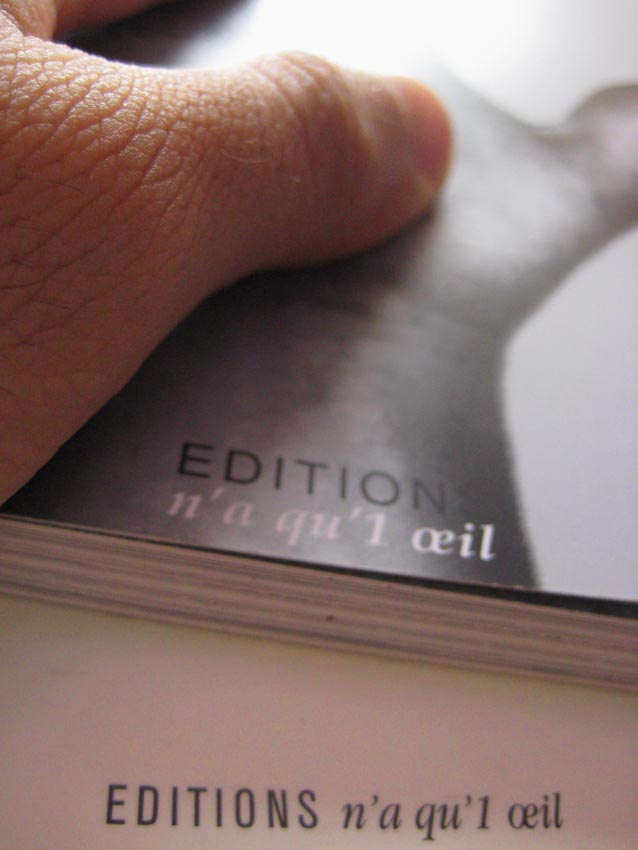 n’a qu’1 œil es una casa editora. su local es una antiquísima tienda en una esquina en Bordeaux, yo fabulo que fue una botica por su techo infinito y sus también infinitos estantes que han desplazado los frascos, tubos de ensayo y pipetas por libros de colores, de diversas formas, hechos de cartón, de papel periódico, allí, alistándose para ser vistos por los transeúntes que conceden un segundo a esta singular vitrina o para los otros editores y poetas las noches en que hay lecturas, performances, residencias, comilonas, en honor a los libros.