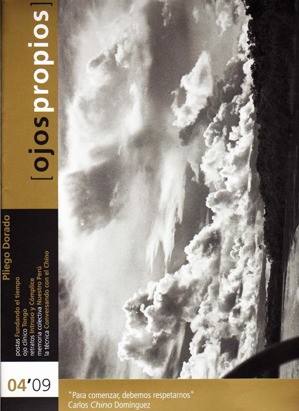 “El fotógrafo de hoy en día trabaja por el sobre, y eso me molesta; no lee, no es amigo de los poetas, de los libros. El hombre sufre de un flojera mental. Hay que buscar nuevas miradas, romper esquemas y entrever la vida.”- dice “Chino” Domínguez en la reciente edición /04/que Ojos propios le dedica en homenaje. Ojos propios está en esa línea. Poseedora de una calidad poco común en el medio, esta publicación de fotografía dirigida por Andrés Longhi, nos entrega gratuitamente imágenes de nosotros mismos y nuestro entorno, expone el trabajo que fotógrafos conocidos y no tanto; entre work in progress y diálogos técnicos y hasta poéticos.