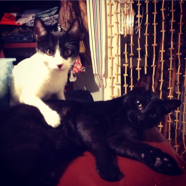 Estas dos son las ocasiones en las que he tenido más de un gato. Tres gatas de distintas razas y recogidas en diversas condiciones y, hoy, dos gatos hermanos pour de vraie.